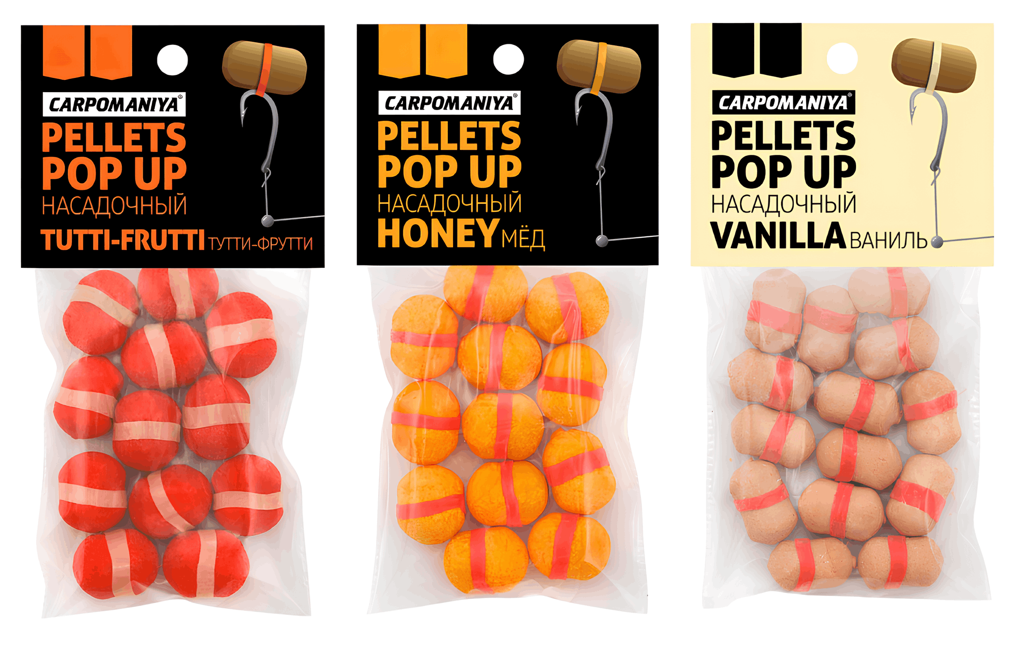 Карп хоть и считается обжорой, но бывают периоды, когда он реагирует только на определенные ароматы. Кормовой пеллетс, производимый для искусственного выращивания рыбы, как правило, не имеет в составе никаких ароматических компонентов, поэтому плохо подходит для карповой рыбалки на большинстве водоемов. Гораздо эффективнее на их фоне выглядит аналогичная продукция рыболовных компаний, предназначенная для любительской и спортивной ловли. Гранулы могут иметь самые разные ароматы, но лучше всего работают: