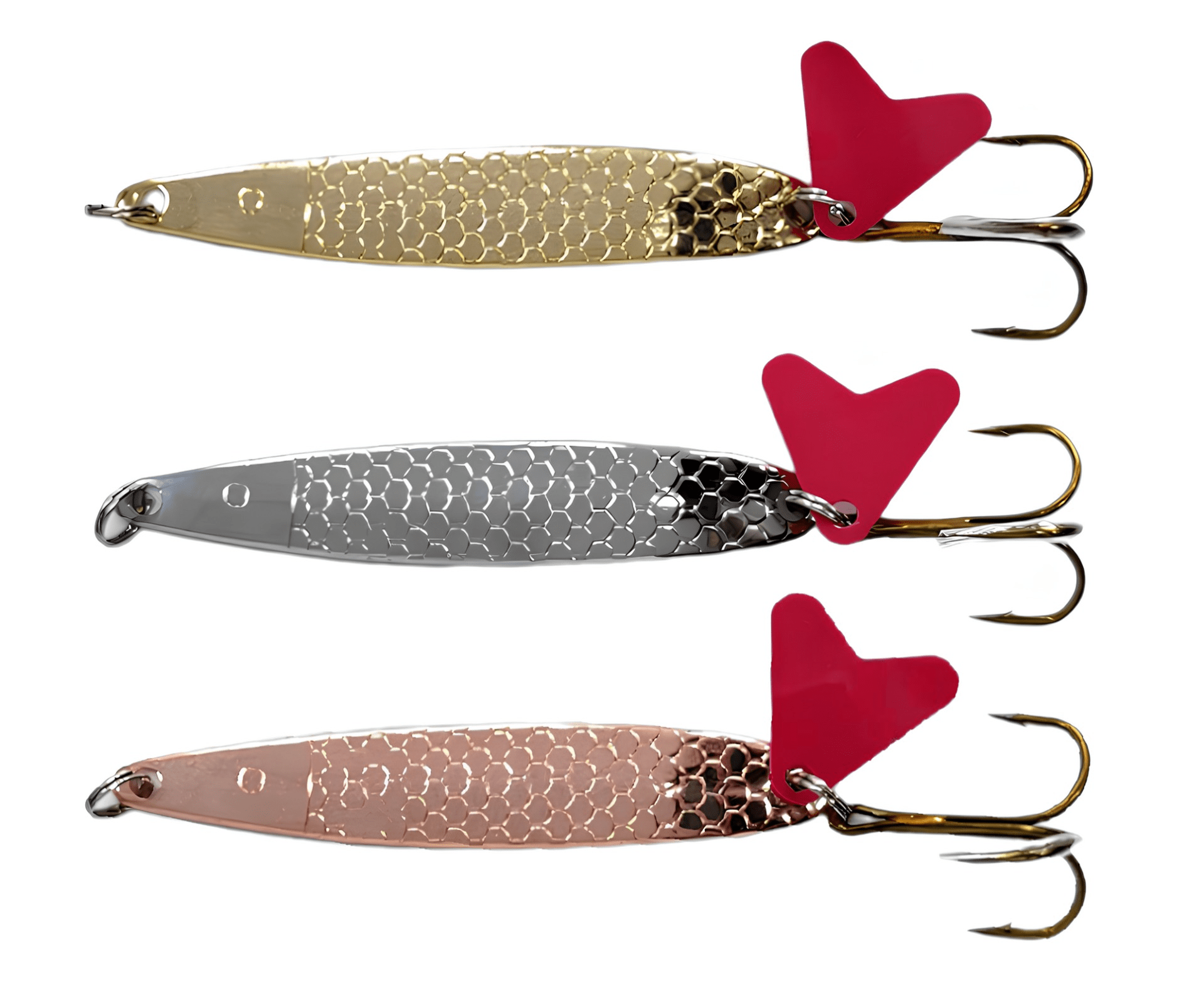 Колеблющиеся блесны отличаются разнообразием форм, но на некоторых из них можно увидеть дополнительные элементы, такие как плавники. Эти плавнички служат для стабилизации игры приманки как в поперечном, так и в продольном направлении, уменьшая вероятность срыва во вращение при активной проводке.
