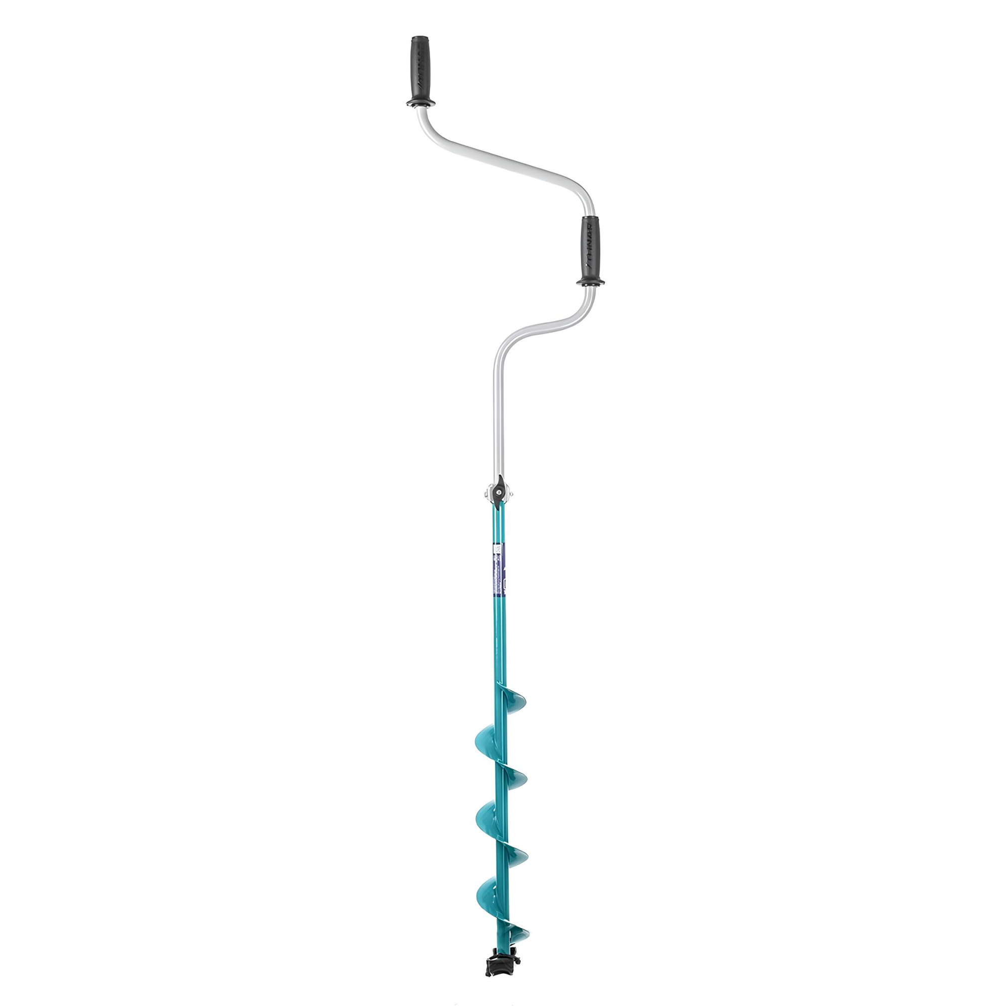 Двуручный бур имеет рукоятки, вынесенные за ось штанги. Неподготовленным рыбакам он может показаться неудобным, так как для бурения требуется определенный навык. Однако нагрузка распределяется на обе руки, что позволяет сделать лунку быстрее и с меньшей затратой сил.