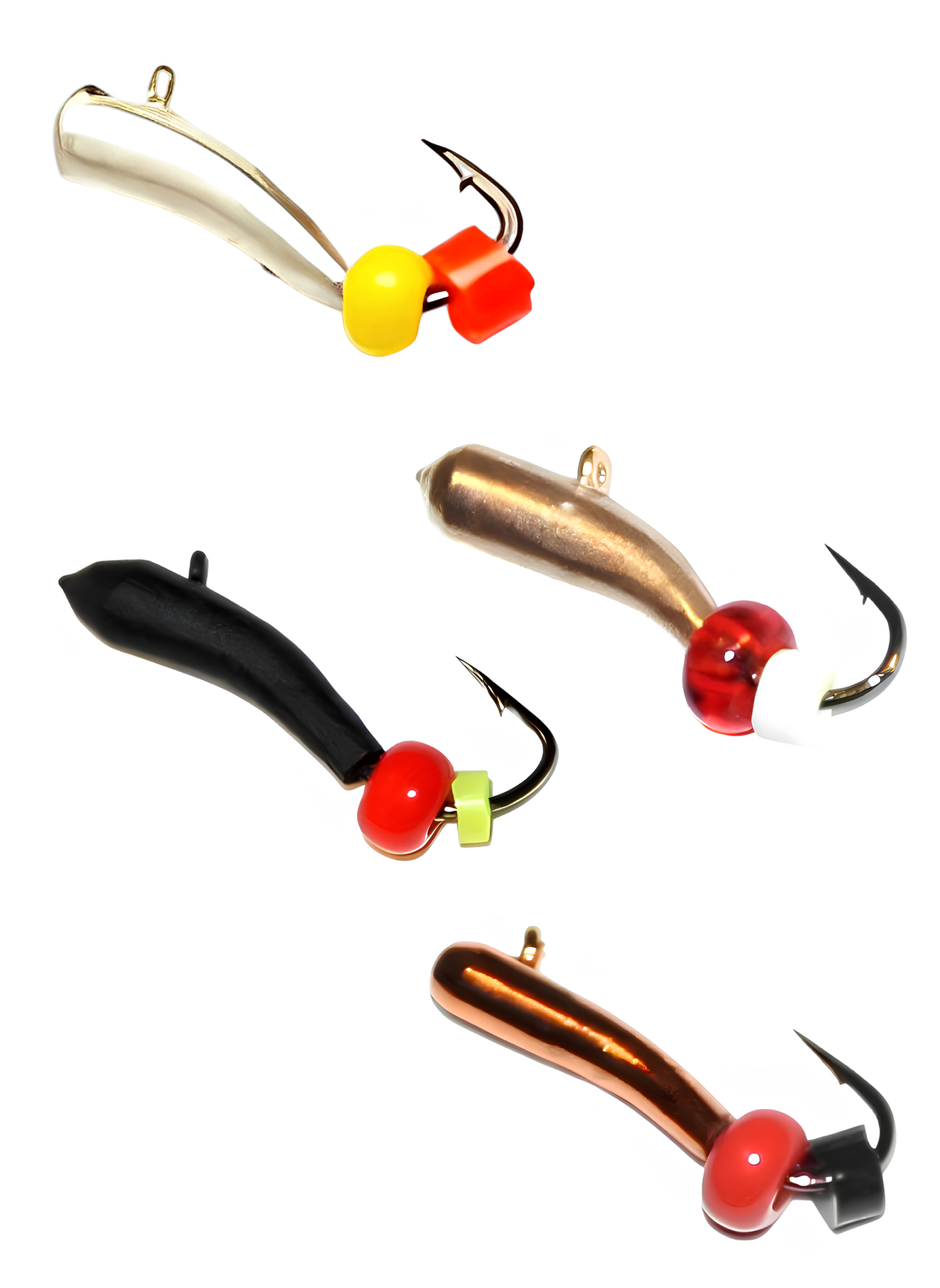 •  Лодочка — эта конструкция разработана для лова на глубинах до 2,5 метра мирных видов рыб. Подобная мормышка требует активной проводки, чтобы привлечь мирную рыбу. Приманка может иметь любую расцветку, с наличием дополнительных элементов, привлекающих рыбу.