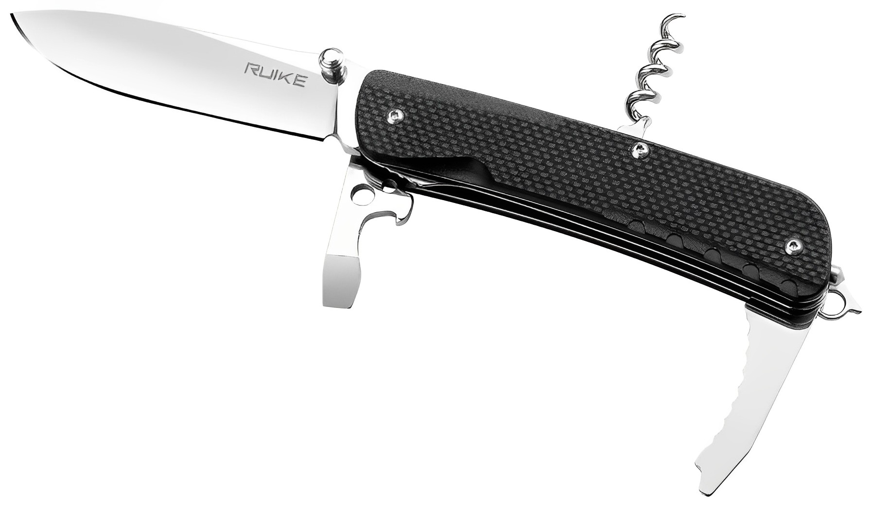 •  Нож. Он предназначен для работы на кухне, с тканями, шнурами и деревом. Ножи в мультитулах не такие крепкие, как туристические ножи с фиксированным клинком, но сопоставимы по прочности с большинством складных ножей.